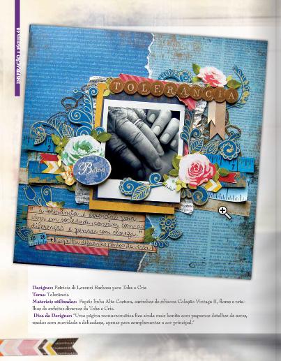 O Guia do Scrapbooking trouxe além de uma página muito especial para mim publicada na página 48, um PAP que gosto muito, onde reutilizo tirinhas de marcas de papéis de scrap como background, que está na página 68.