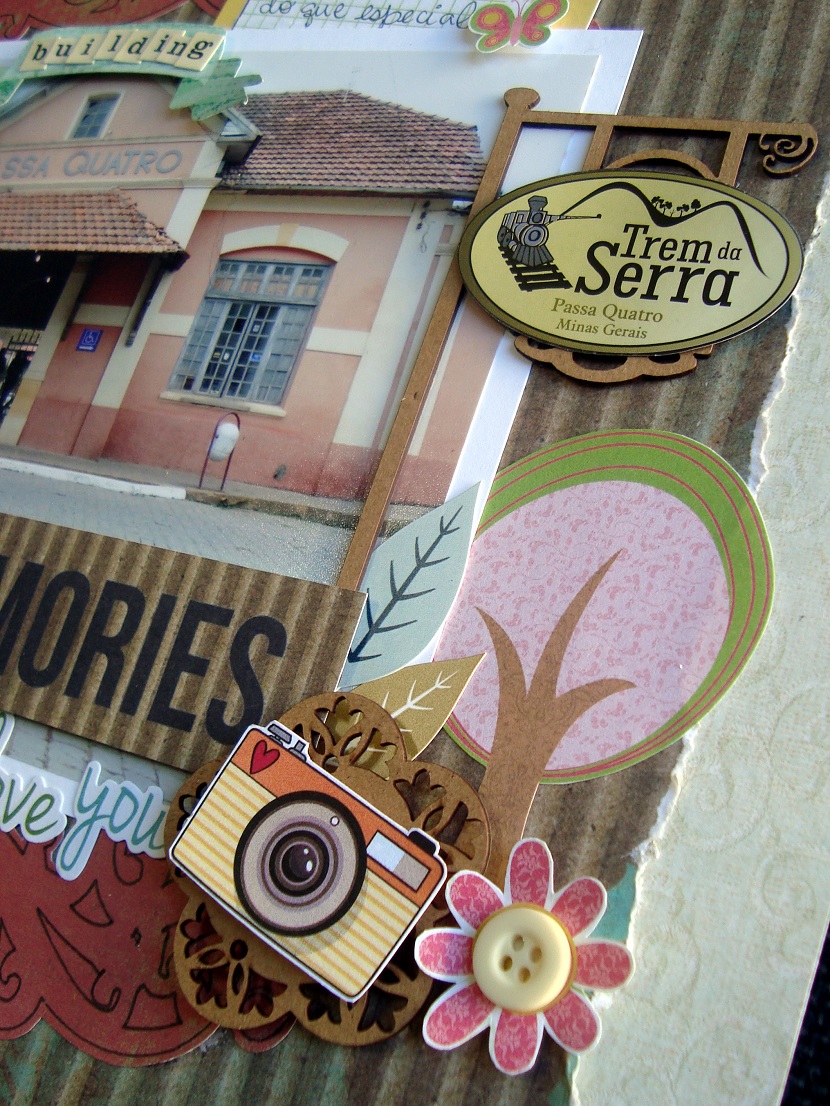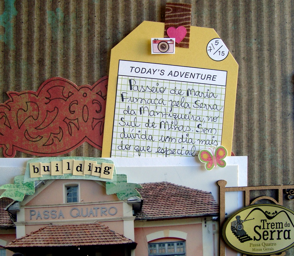 Neste ritmo, venho mostrar uma página que fiz para deixar registrado um passei de trem que fiz com meu marido e os sobrinhos no começo de julho! Sim, fizemos um passeio de trem, mais especificamente de Maria Fumaça! Afinal, andamos de bicicleta, de metrô, de carro, de avião, de navio… mas quase nunca de Maria Fumaça, né!! Foi delicioso, o pequeno até tirou um cochilo com o balanço do trem!