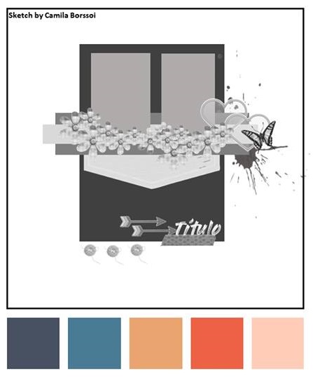 Algumas pessoas me perguntaram o que é sketch?! Sketch nada mais é do que um desenho, um esboço, uma sugestão para você criar a sua página. Eles são ótimos quando estamos meio sem ideias para montar um projeto, pois nos auxiliam a posicionar os elementos de uma página, como foto, título, texto e enfeites. E é esta a proposta do grupo Scrap entre Amigas, nos ajudar a criar o nosso registro de memórias, tão importante no scrapbook.