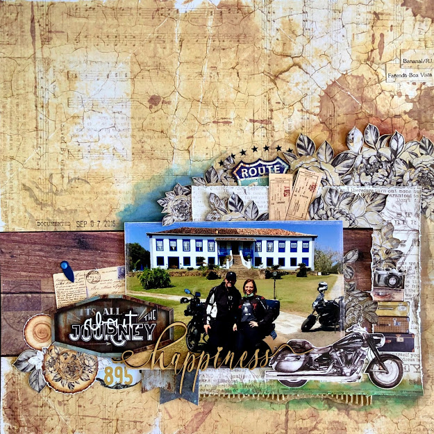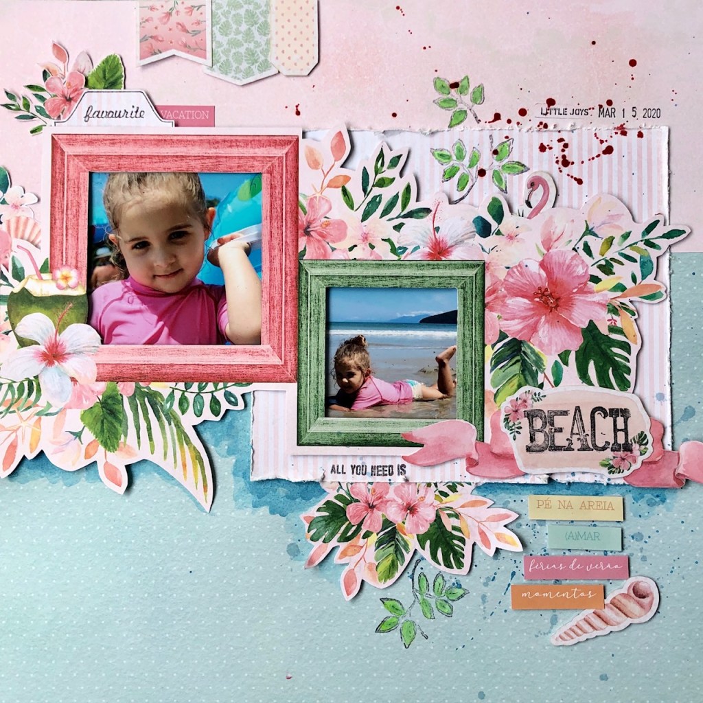 Neste outro LO de cima, fiz a página para o Desafio Sketch#100+3 da Juju Scrapbook, usando o sketch espelhado, com os elementos do lado contrário do sketch original.