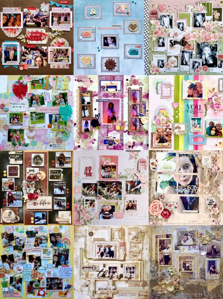 Já nesta imagem abaixo, estão todas as páginas feitas pelas meninas do Time de Design do Scrap Entre Amigas, usando o Sketh #102 de Novembro. Olha só quantos LOs diferentes podem ser feitos com um mesmo sketch!