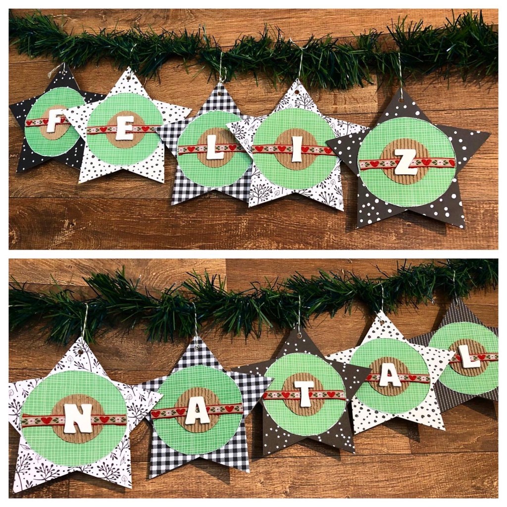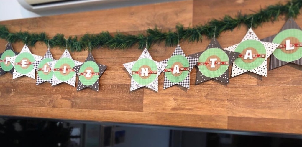 Fiz também um cordão de estrelas com Feliz Natal, que ficou assim…