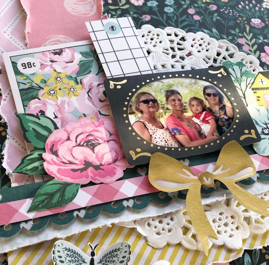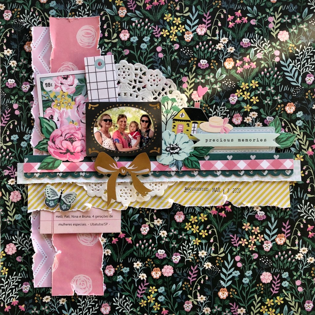 Em julho fiz a página “Precious Memories”, uma pequena homenagem ao Dia das Avós, que foi comemorado no dia 26/07, quando também é aniversário da minha filha. Na foto estão minha mãe e eu – bisavó e vó, minha neta Nina e minha filha Bruna.