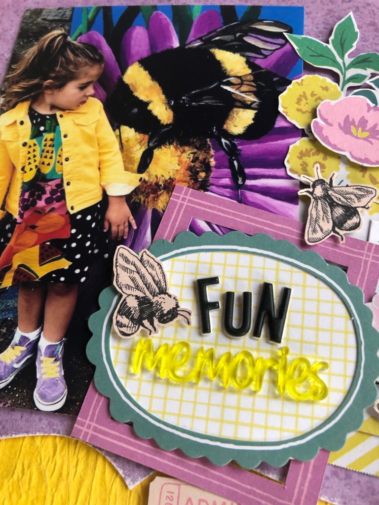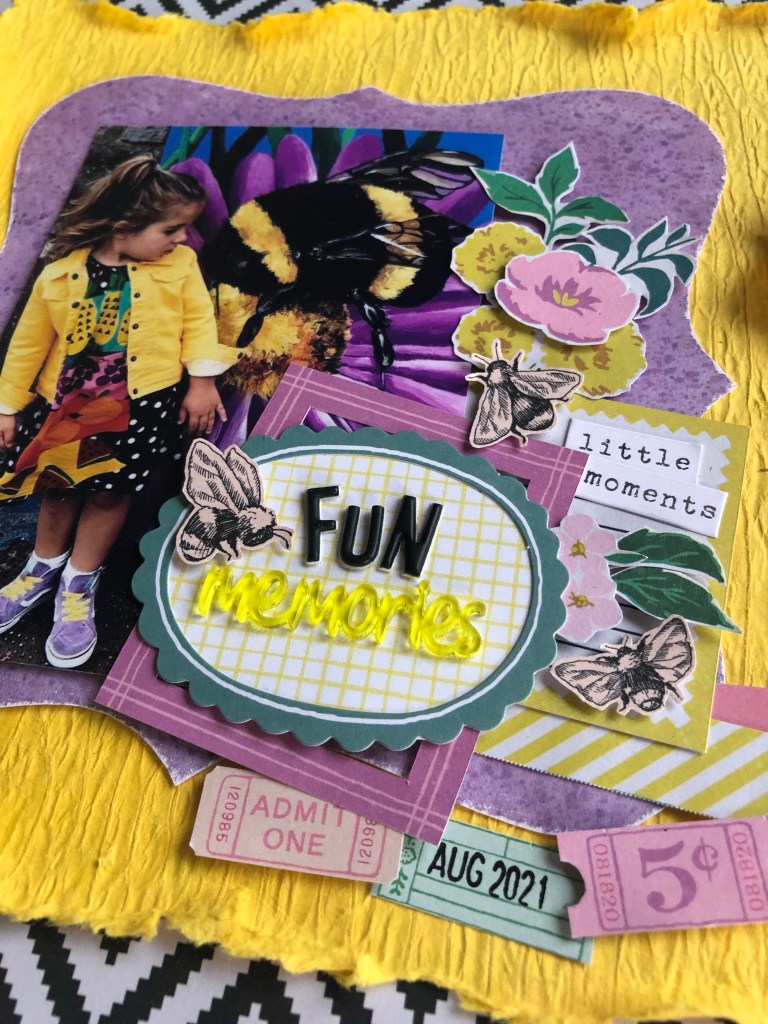 Esse foi meu projeto mais recente inspirado no sketch, uma página com um colorido meio fora do que costumo usar, mas totalmente inspirada nas cores da fotografia. Uma memória divertida da minha neta Nina.