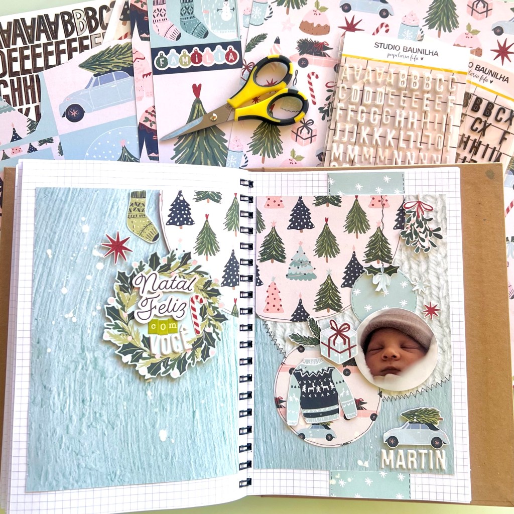 Aproveitei para fazer a 1ª página para o meu neto, que nasceu no final de Outubro…