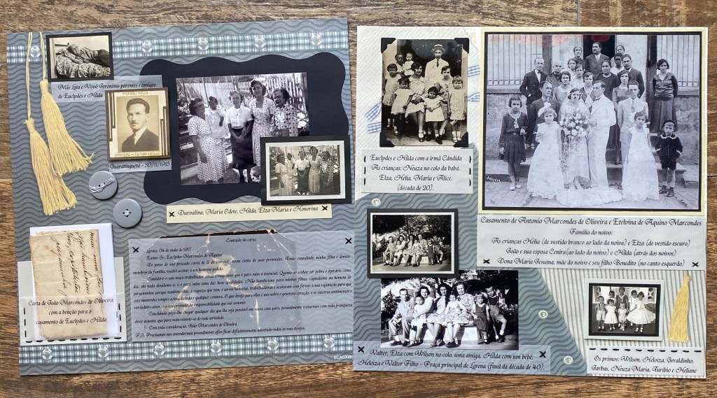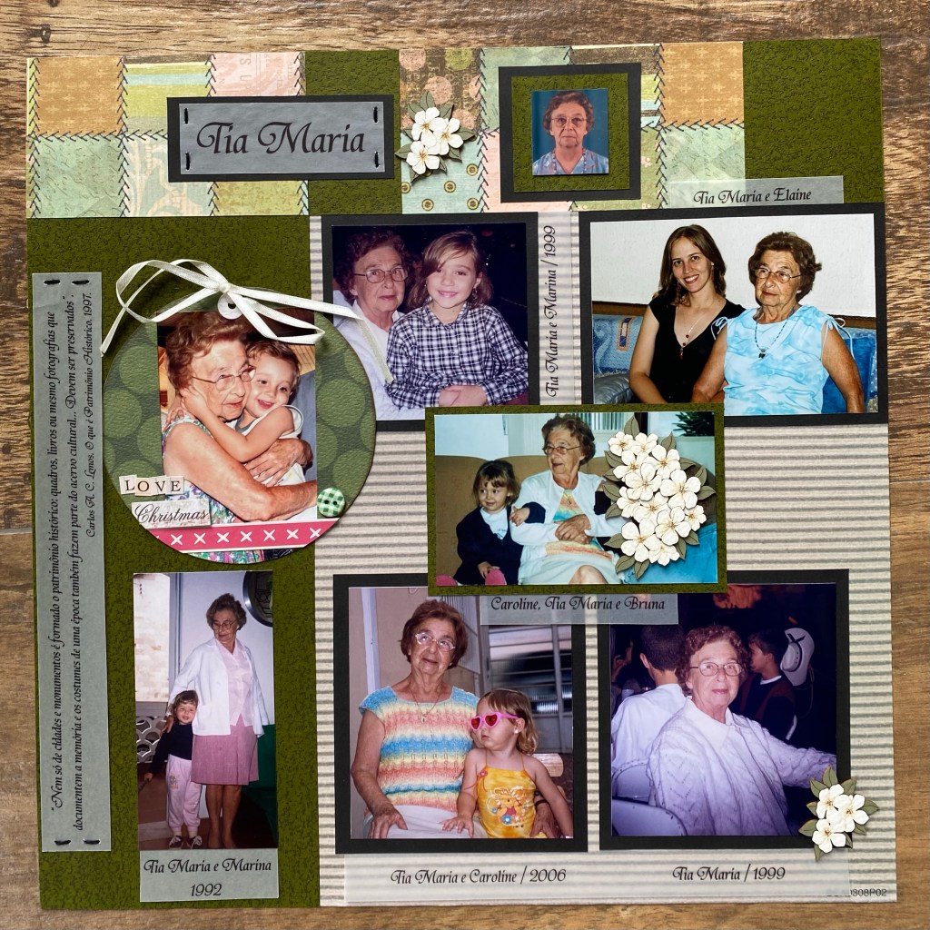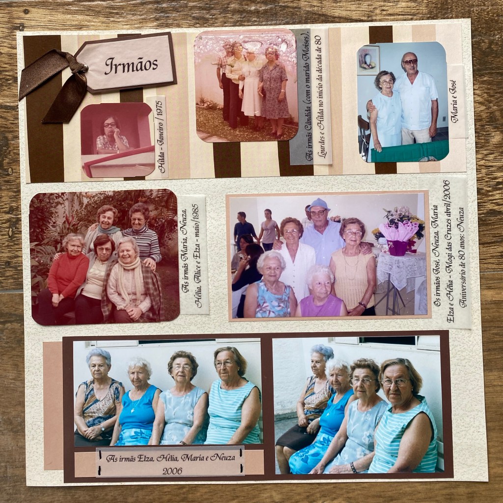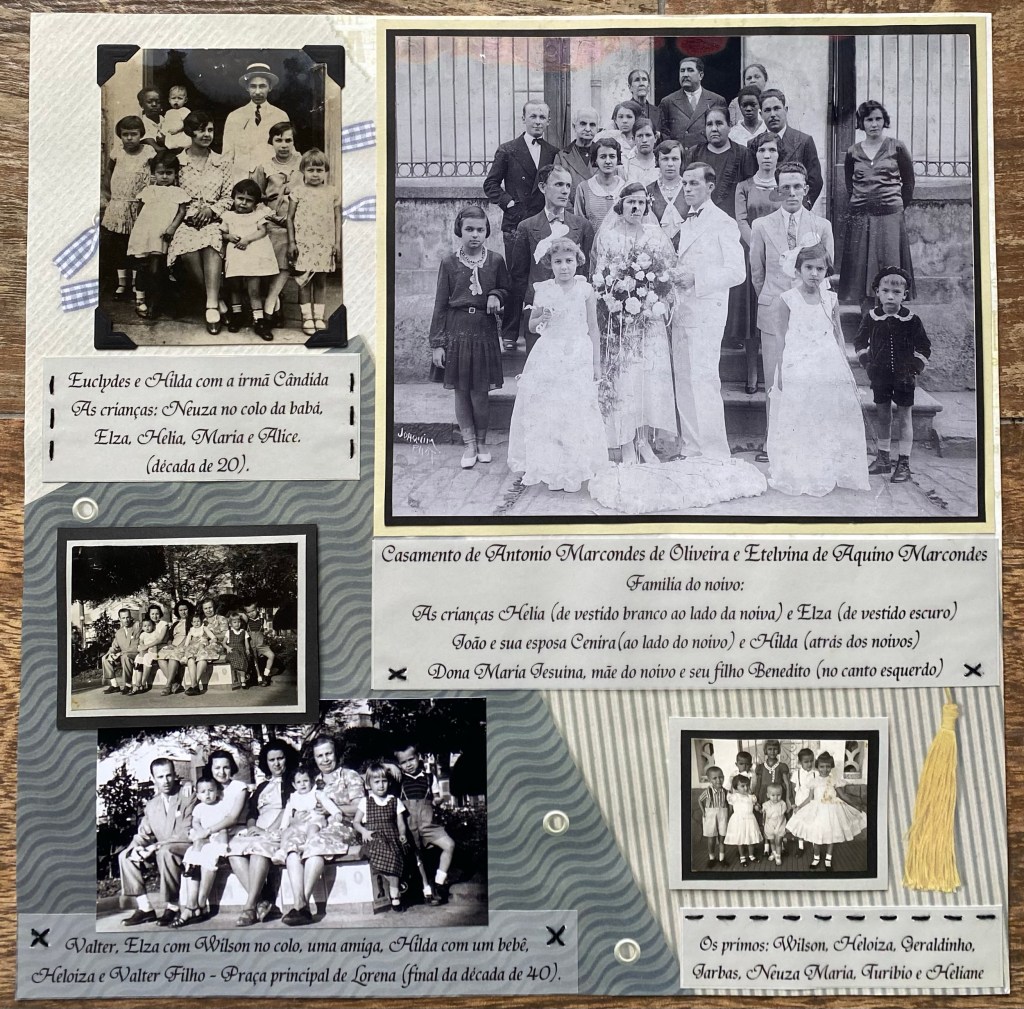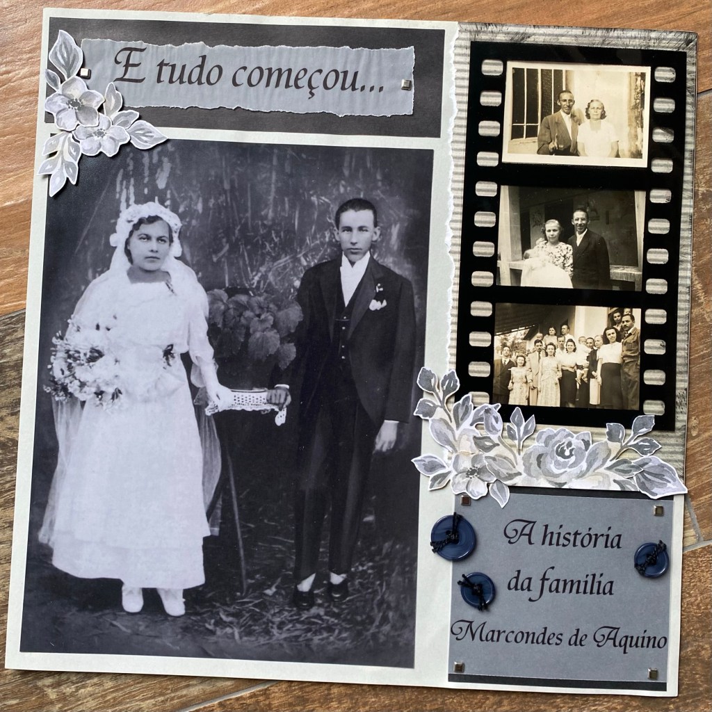 Quando comecei a fazer esse álbum, lá em 2007/2008 – que permanece em constante atualização, meu objetivo era unicamente reunir as fotos de família que a tia Maria organizou; não me preocupei com design, materiais, técnicas ou coisas do tipo, meu único foco era conseguir colocar todas as fotos que ela guardou.